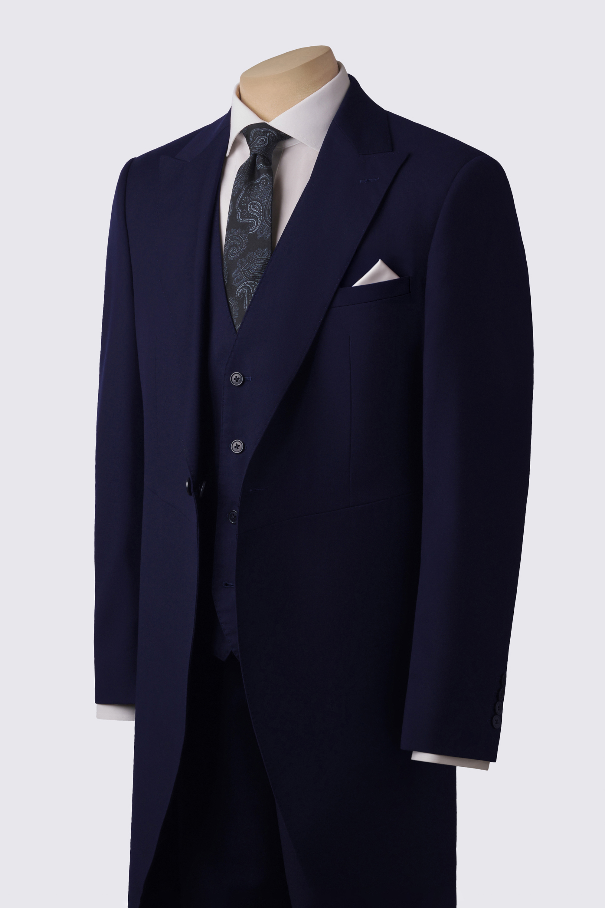 SelectHonour the dress code with our navy tails suit, woven with a subtle twill structure that makes selecting accessories easy. We've cut it to a tailored fit in 100% wool for an elegant drape. Customise the look with your choice of waistcoat and finishing touches.