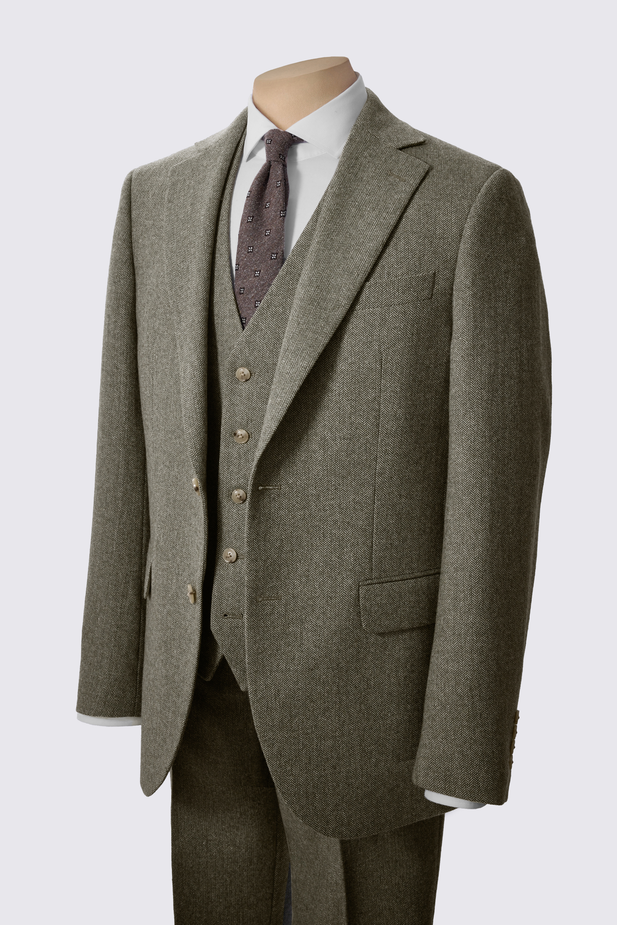 Cut to a classic tailored fit, our sage herringbone suit is tweed tailoring at its finest. With a textured herringbone weave, it's a traditional option with a modern twist, the tortoiseshell buttons adding vintage-inspired detail. The suit also comes with the option of an additional waistcoat for a refined touch.